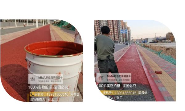 MMA彩色陶瓷颗粒防滑路面,高速公路警示路面,急转弯路面,隧道入口等需防滑处理的道路,ETC收费车道、公交车道,十字路口等候区道路、机场、广场等停车带、停车场、自行车道、人行道、公园景观绿道、小区道路等都可以铺筑彩色防滑路面,施工24小时后即可开放交通,颜色呈现均匀靓丽,根据不同路面需求选择不同的颜色施工人员。